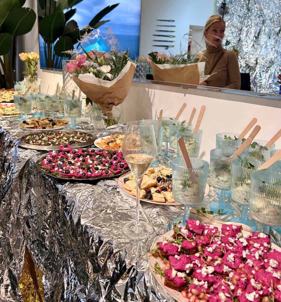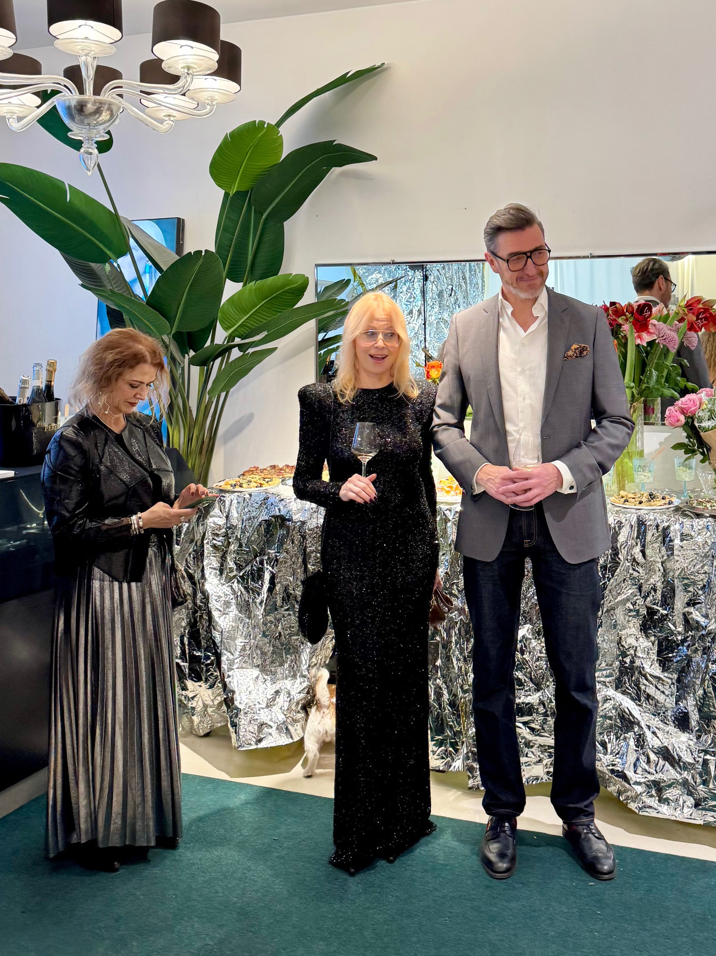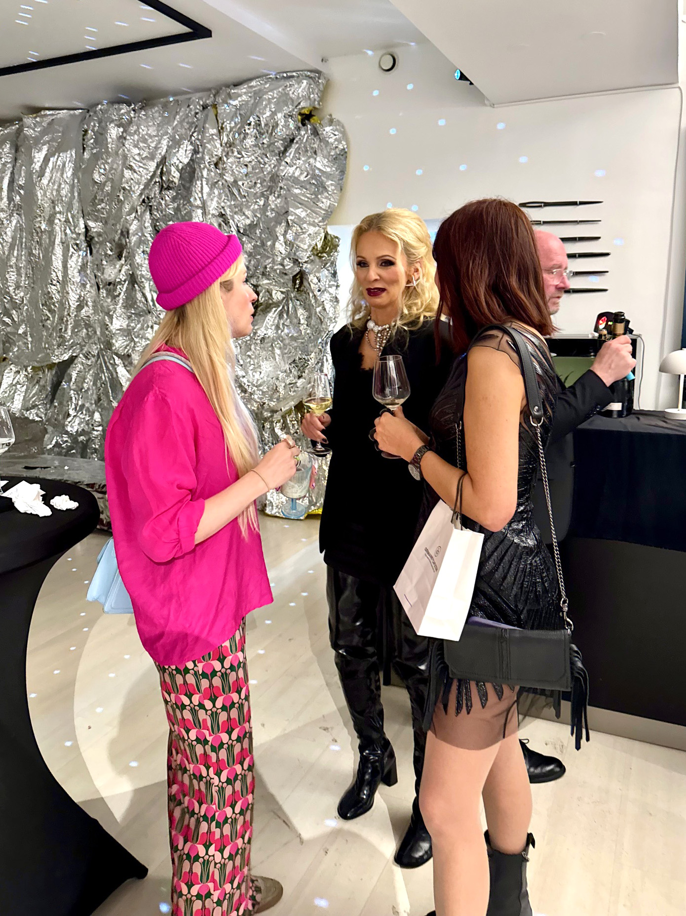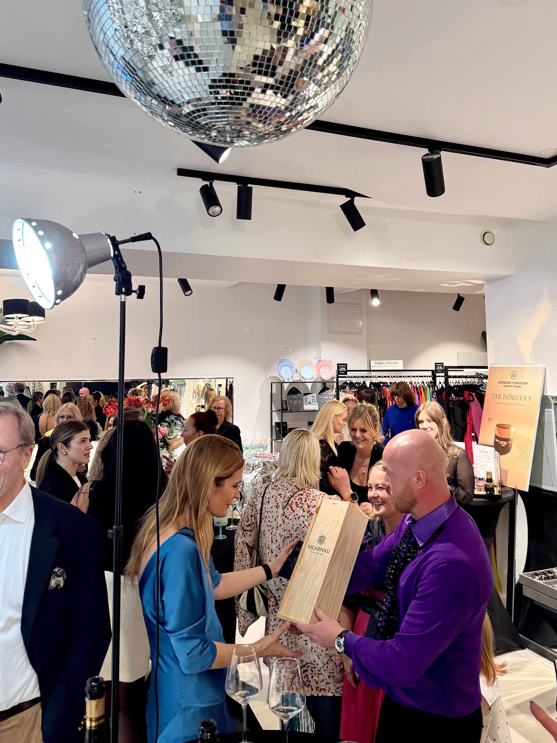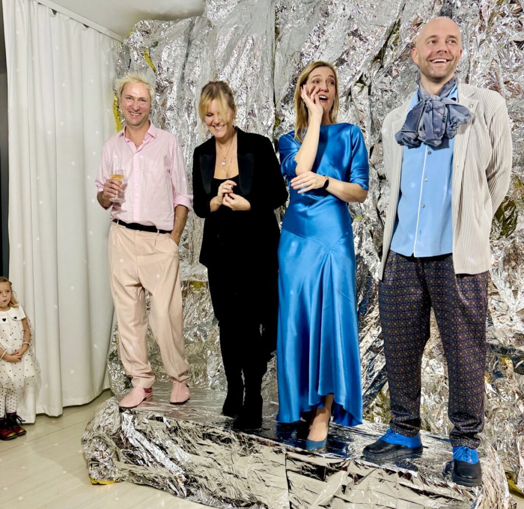 Boonusena tähistasid ka kvarteti Amburid – Aldo ja Riina – oma sünnipäevi. Külalisi kostitati nii vahuveini kui ka kammerliku moeshow’ga. Iga disainer pani kokku kolm piduliku hõnguga komplekti.