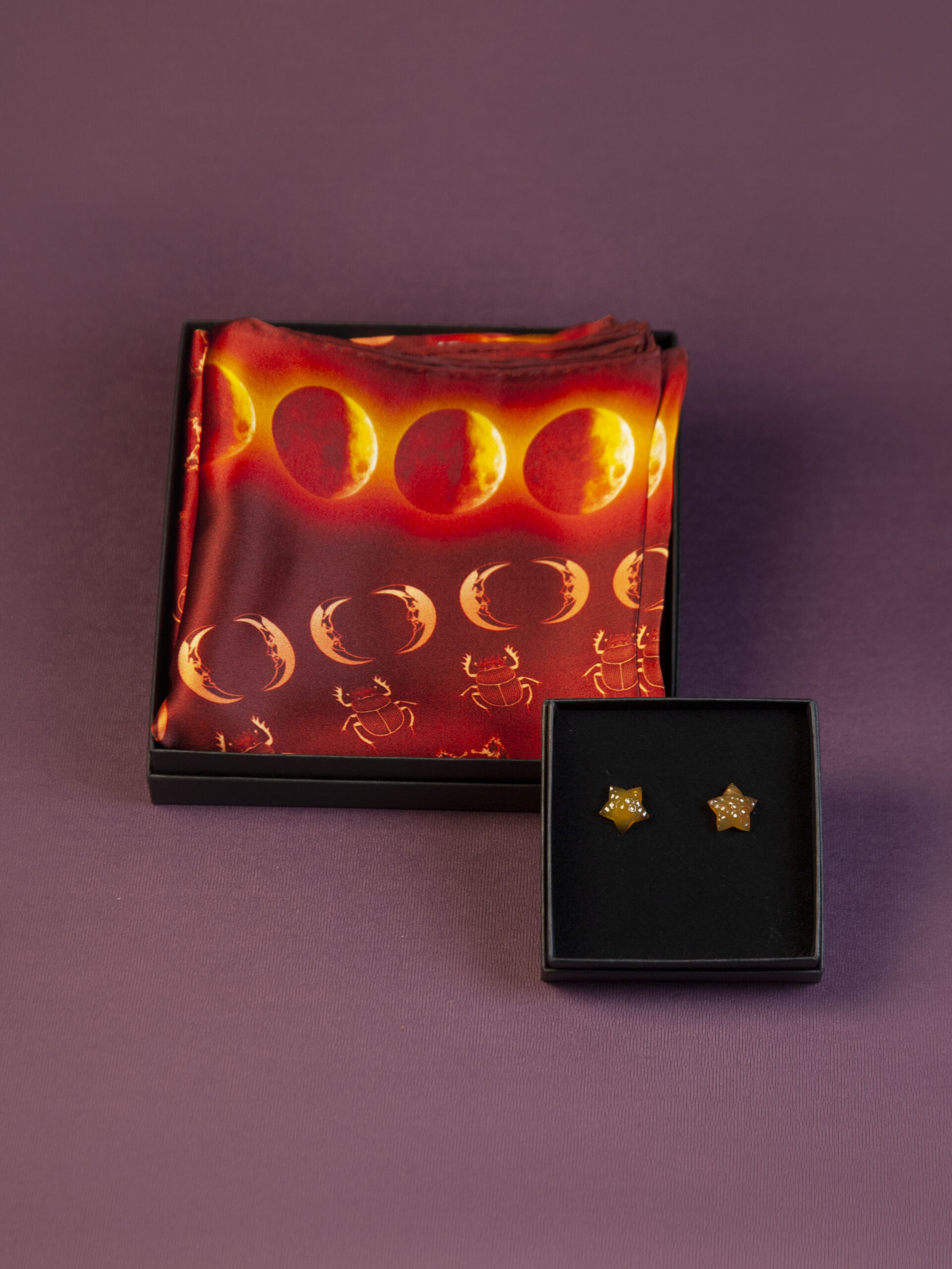 Siidrätik on ajatu ja luksuslik kingitus, mis ei kaota väärtust ajas. Lunula seeria kuud on tugeva karakteriga – maagilised, mängulised, kuid samas ajatud. Taneli disainitud Lunula siidrätikute keskmes on kuu kui taevakeha oma maalilise maastikuga. Kuu ümber tantsivad oma rituaalseid tantse hingeloomakesed: merihobukesed, mardikad, merikarbid ja kiilid. Rätiku raamiks on kuuring – kuu kasvamise ja kahanemise maagiline tsükkel.