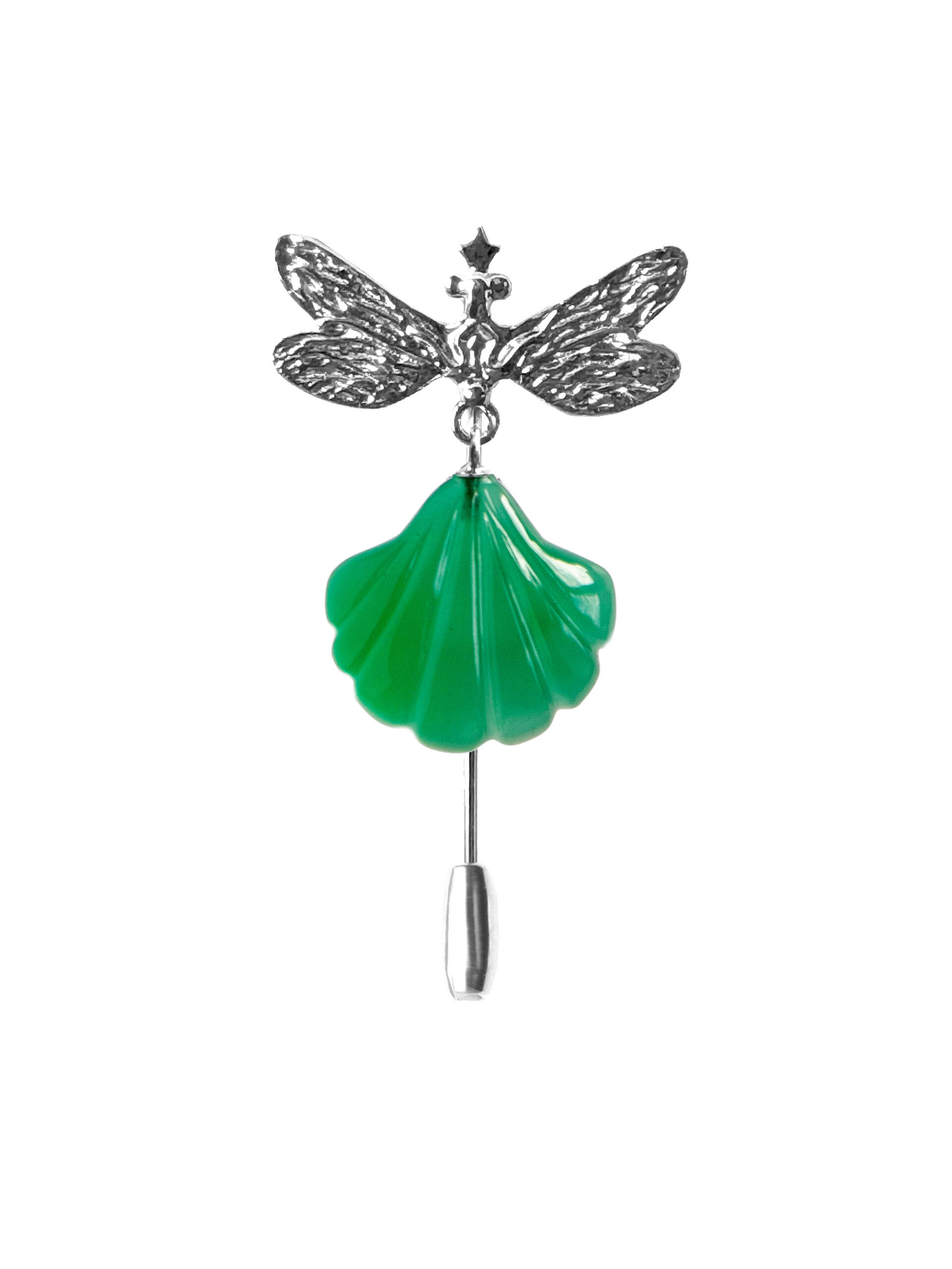 Libellula rinnanõel on kelmikas lisand reväärile või rinnaesisele. See sobib nii härrasmehele kui ka daamile, jäädes väljapeetuks, ent lisades isikupärase aktsendi. Sillerdav ja liikuv poolvääriskivist saba toob ehtele sära ning elegantsi. Terav nõel läbib kanga koe ja kinnitub väikese metallist otsikuga.