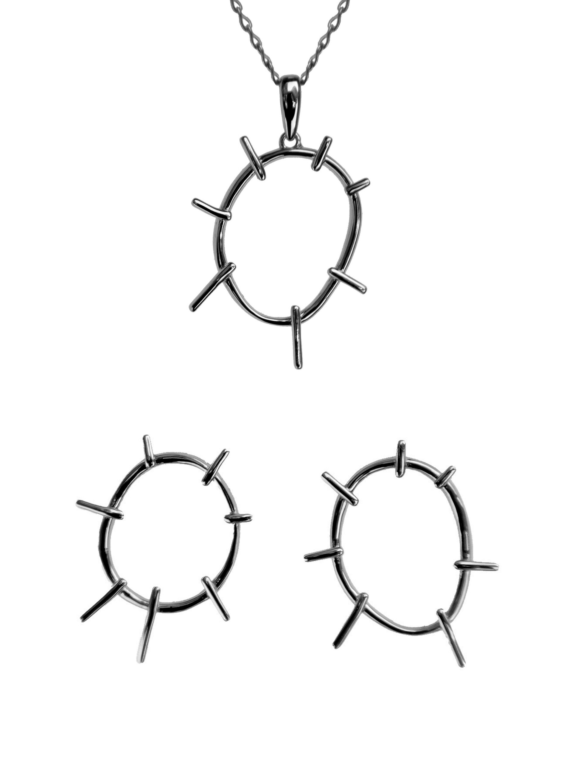 Tanel on kandnud laste joonistatud päikesed hõbedasse, säilitades joone siira juhuslikkuse. Vaba joont järgivad hõbetraadist kõrvarõngad ja ripatsid on kergesti kantavad ning lapsemeelselt mängulised lisandid. Ajatu, kelmikas ja mängulisele hingele paslik valik 🙂