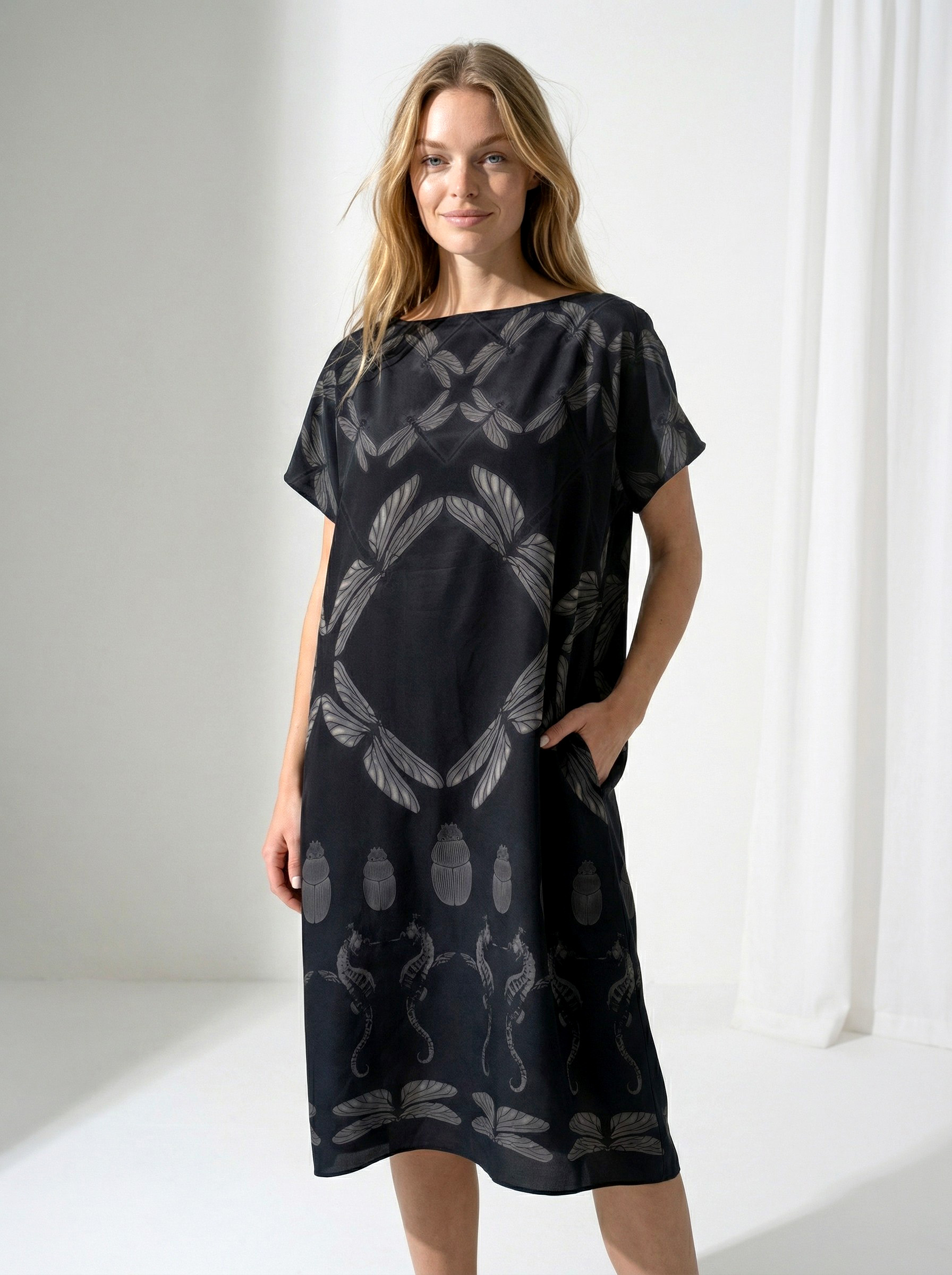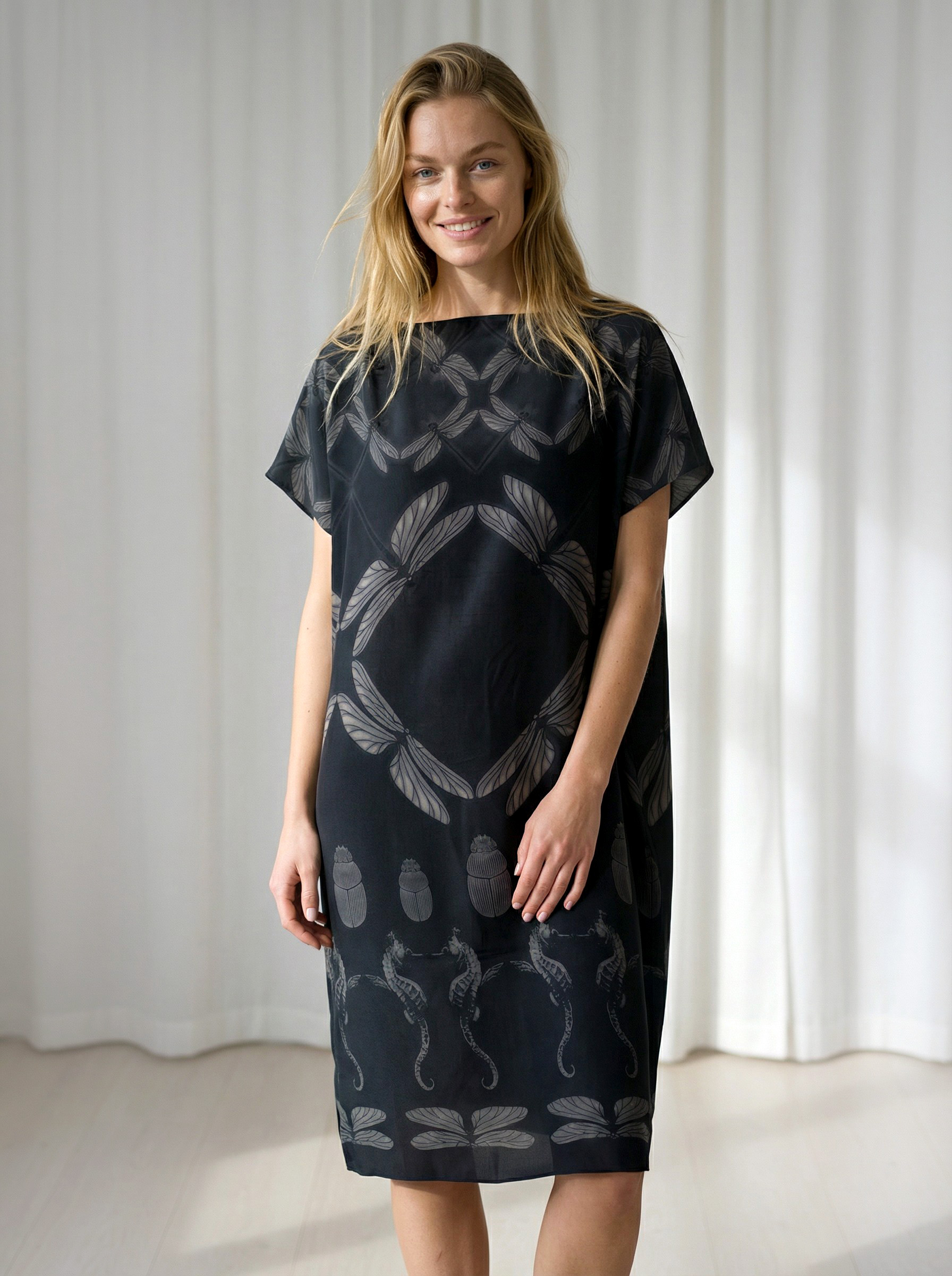 Mõnus avara lõikega Tanel Veenre trükimustrilisest siidist topp – sobib nii lemmikpükste kui ka seeliku peale. Samuti on see ideaalne rannas päevitusriiete peale visata. Naturaalne ja hingav kvaliteetne siid tagab kandjale mugava ja kerge enesetunde. Sobib unikaalsust hindavale kliendile – igast tootest on maailmas vaid üks eksemplar 🙂