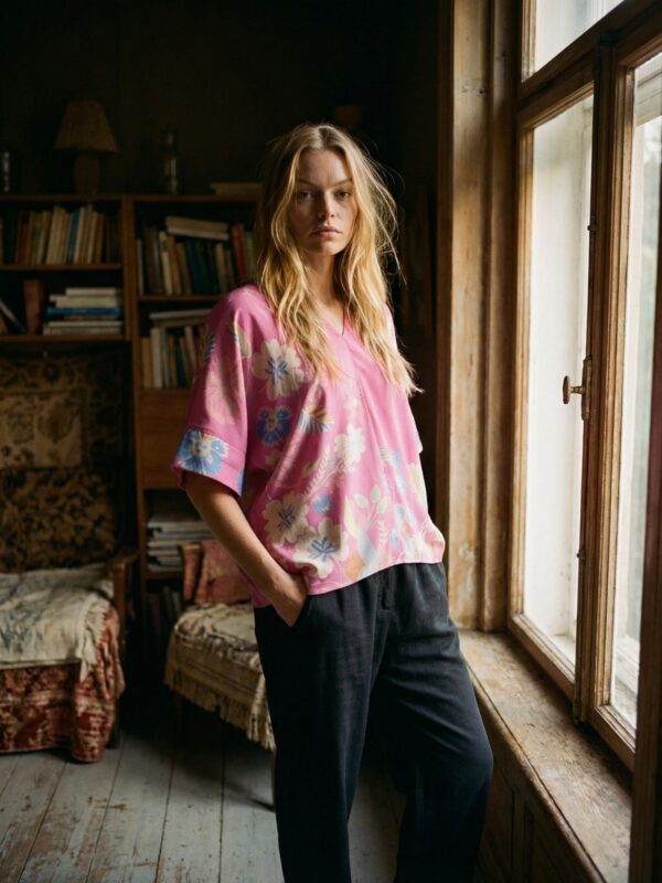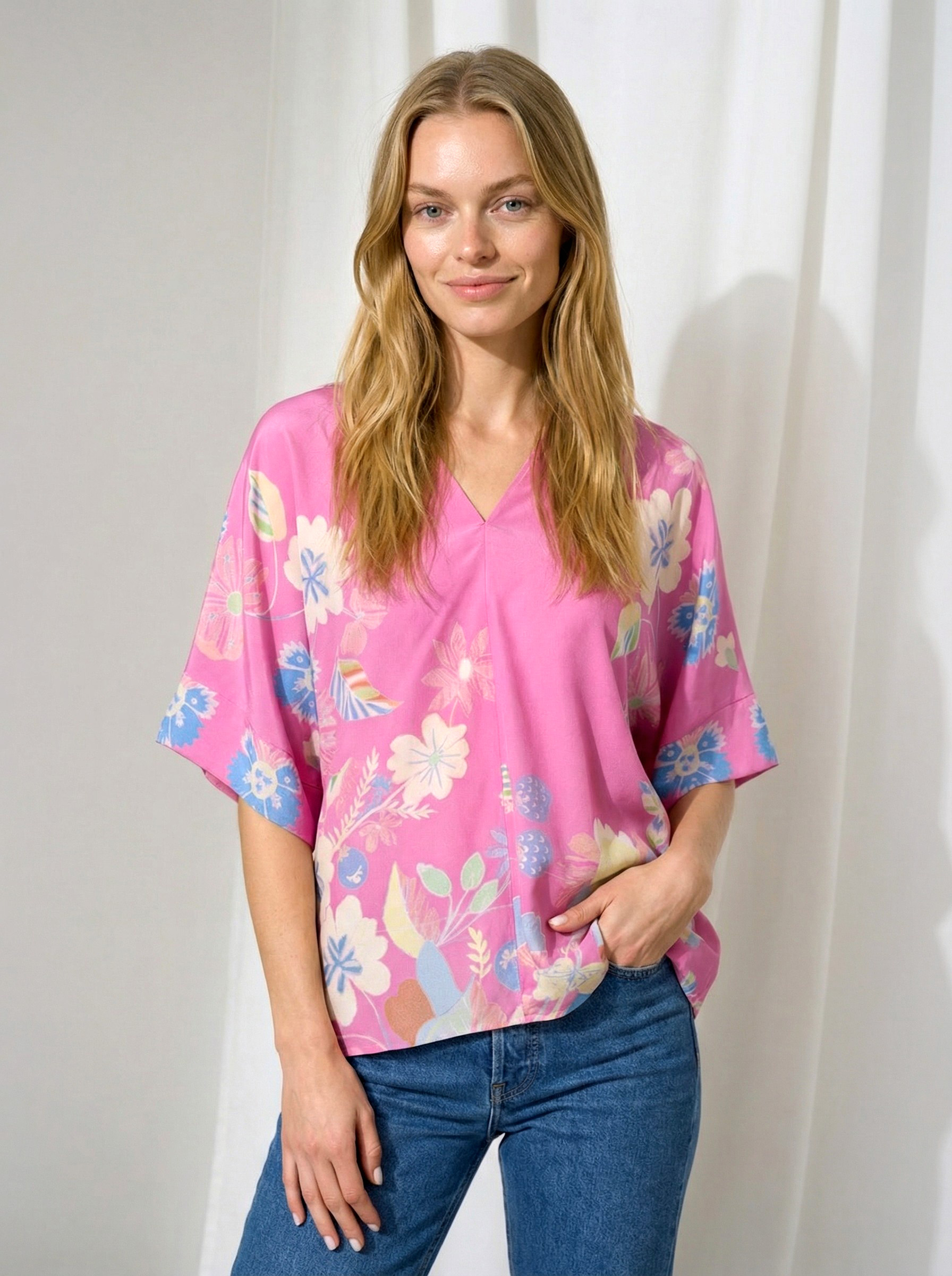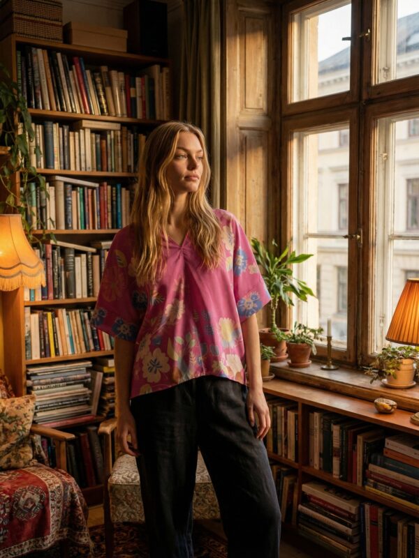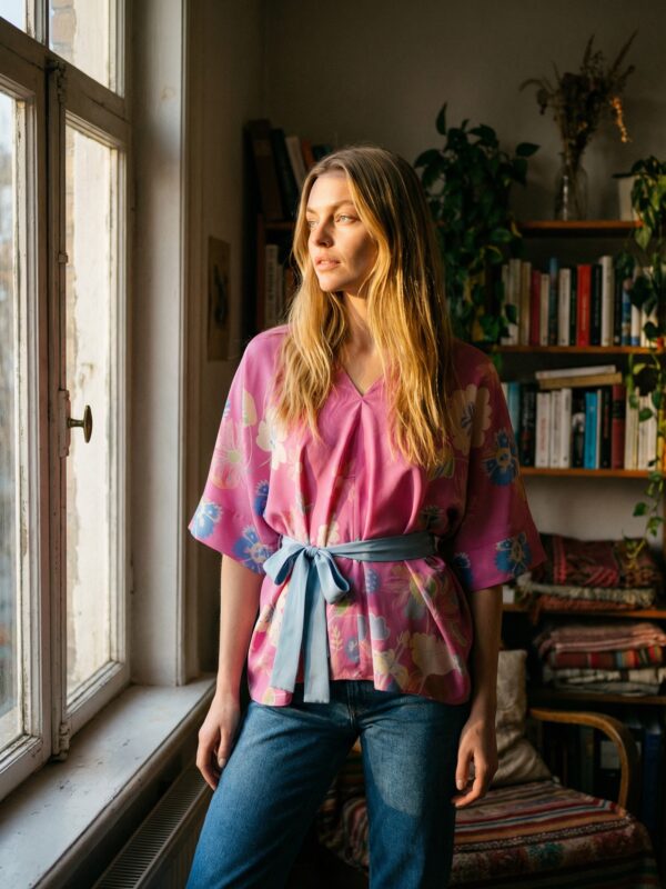 Mõnus avara lõikega Tanel Veenre trükimustrilisest siidist topp – sobib nii lemmikpükste kui ka seeliku peale. Samuti on see ideaalne rannas päevitusriiete peale visata. Naturaalne ja hingav kvaliteetne siid tagab kandjale mugava ja kerge enesetunde. Sobib unikaalsust hindavale kliendile – igast tootest on maailmas vaid üks eksemplar 🙂