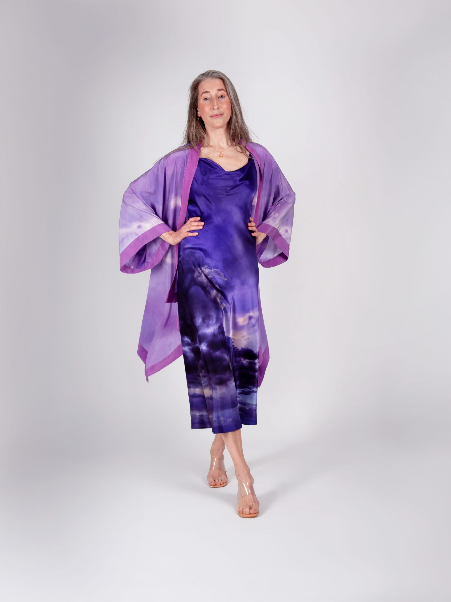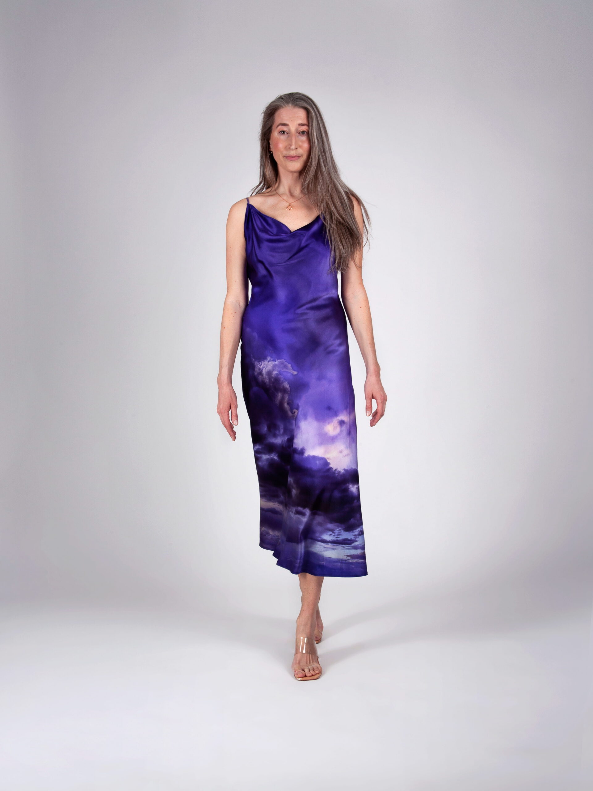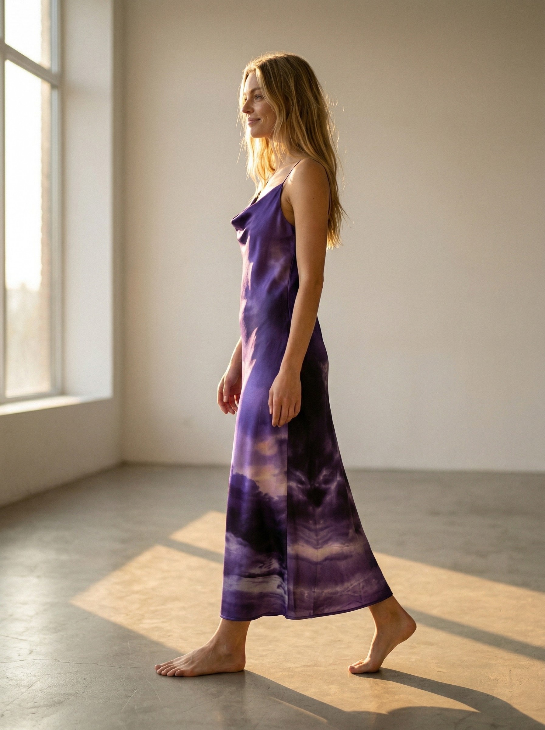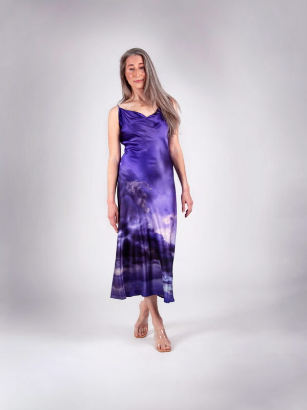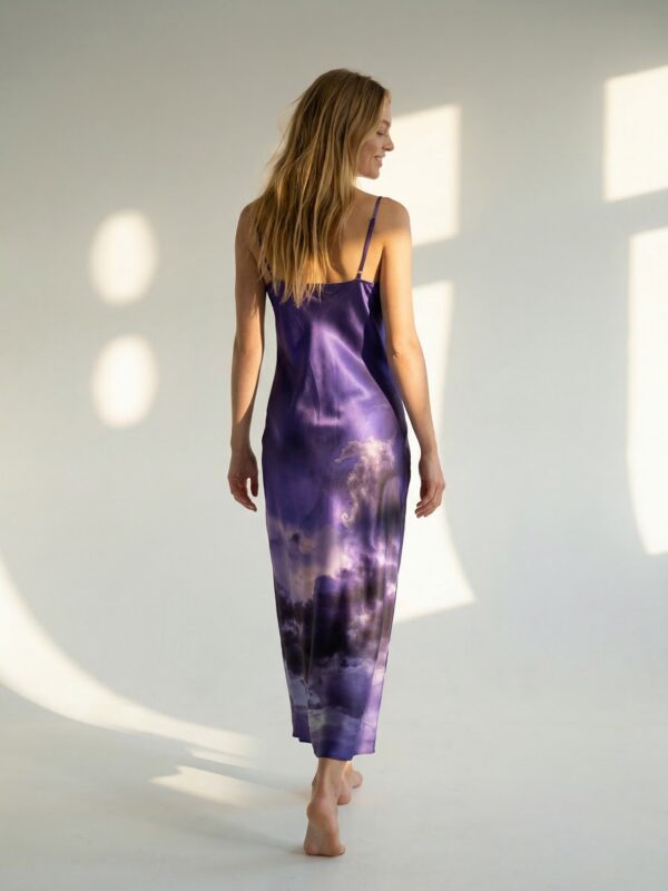 Elegantne ja ajatu siidkleit, mis on lõigatud diagonaalis (bias cut), et langevus oleks loomulikult voogav ja kehakuju kaunilt järgiv. Lihtne, puhas lõige toob esile kanga luksusliku tekstuuri ning annab kleidile kerge ja naiseliku silueti. Kleiti täiustab unikaalne Tanel Veenre disainitud print, mis lisab isikupära ja kunstilist väärtust – sarnast kleiti pole võimalik osta mitte kuskilt mujalt. Alla põlve ulatuv pikkus teeb sellest mitmekülgse valiku nii igapäevaseks kandmiseks kui ka pidulikemaks hetkedeks. Ajatu ese, mis ühendab minimalismi ja unikaalse Eesti disaini. Reguleeritavad õlapaelad võimaldavad sobivust mugavalt kohandada, tagades kandmismugavuse ja ideaalse istuvuse.