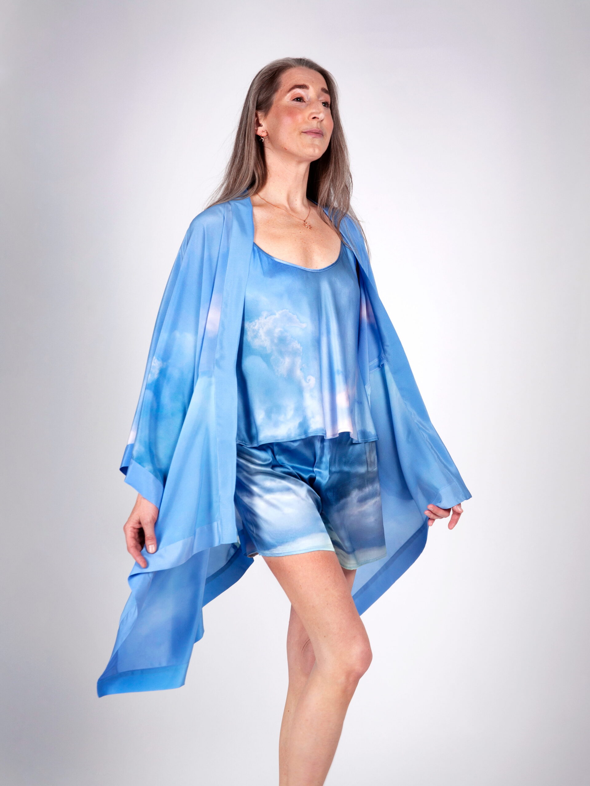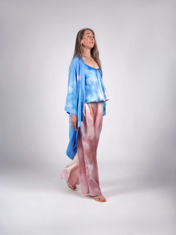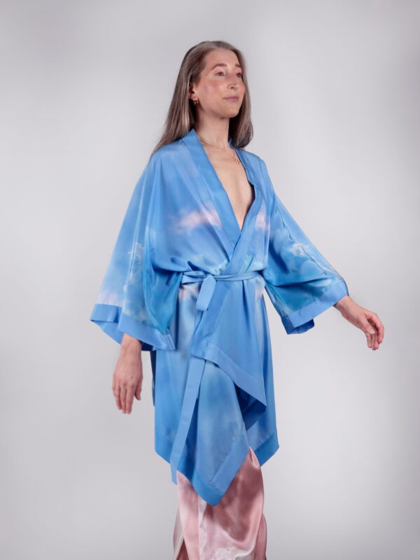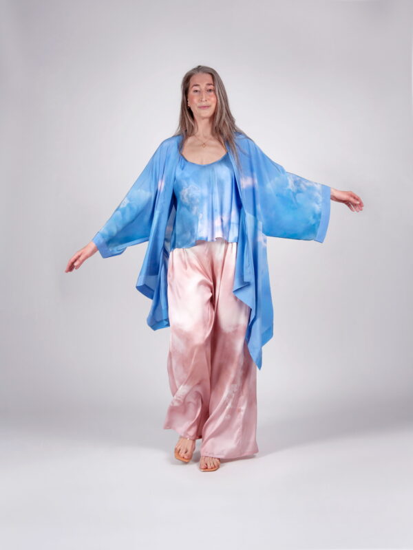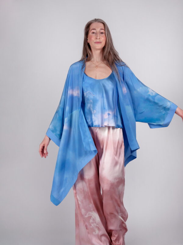 Kimonote lõiked on lihtsad ja avarad, pakkudes maksimaalset mugavust igale kehatüübile. Siidist kimono on ideaalne valik, sest looduslik materjal paitab nahka ja laseb kehal hingata. Täiuslik ka reisile kaasa võtta, sest üks rüü mahub taskusse ja kaalub vaid veidi rohkem kui liblikas. Sobib ideaalselt kanda nii sinu lemmik pükste, bikiinide kui ka vööga kinnitatuna kleidina. Tugeva disain-aktsendina muudab see kimono-pluus iga looki pilkupüüdvaks tervikuks.